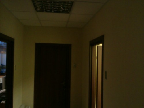 Налево от входа, по коридору центральная дверь