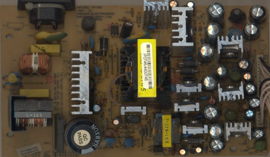 Скан блока питания и фотографию прилагаю в картинках (при замере конденсатор 2200мкф, 10в показывает емкость 170мкф; по щелчку на превьюшки открываются большие фотографии).