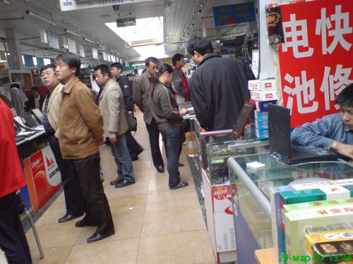 Большой плюс: люди очень вменяемые, за покупателями не бегают и не кричат (как в соседнем через дорогу супермаркете электроники или купи-продай мобильники на одесском радиобазаре). Минус: никто не понимает английский язык и не признают доллары, только юани. Зато жестами можно договориться обо всем. Смешно покупал себе графический планшет: прямо на нем и торговались, рисуя электронной ручкой каждый свою цену, зачеркивая, рисуя слова и реплики в переводчике с английского на китайский и обратно, минут пятнадцатть асимптотически приближаясь к взаимовыгодному результату.